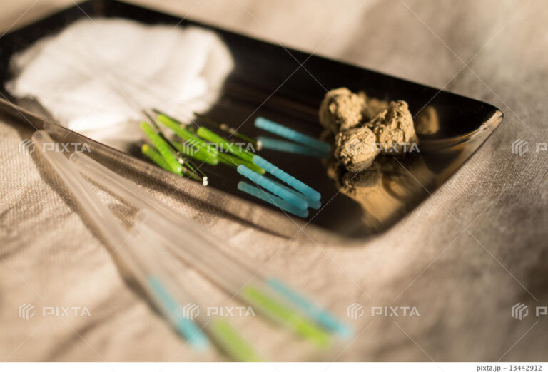 細い鍼を皮膚に刺入し、特定の経絡やツボに作用させます。鍼は体のバランスを整え、エネルギーの流れを調整する目的で使用されます。主に痛みの緩和や不調の改善に効果があります。